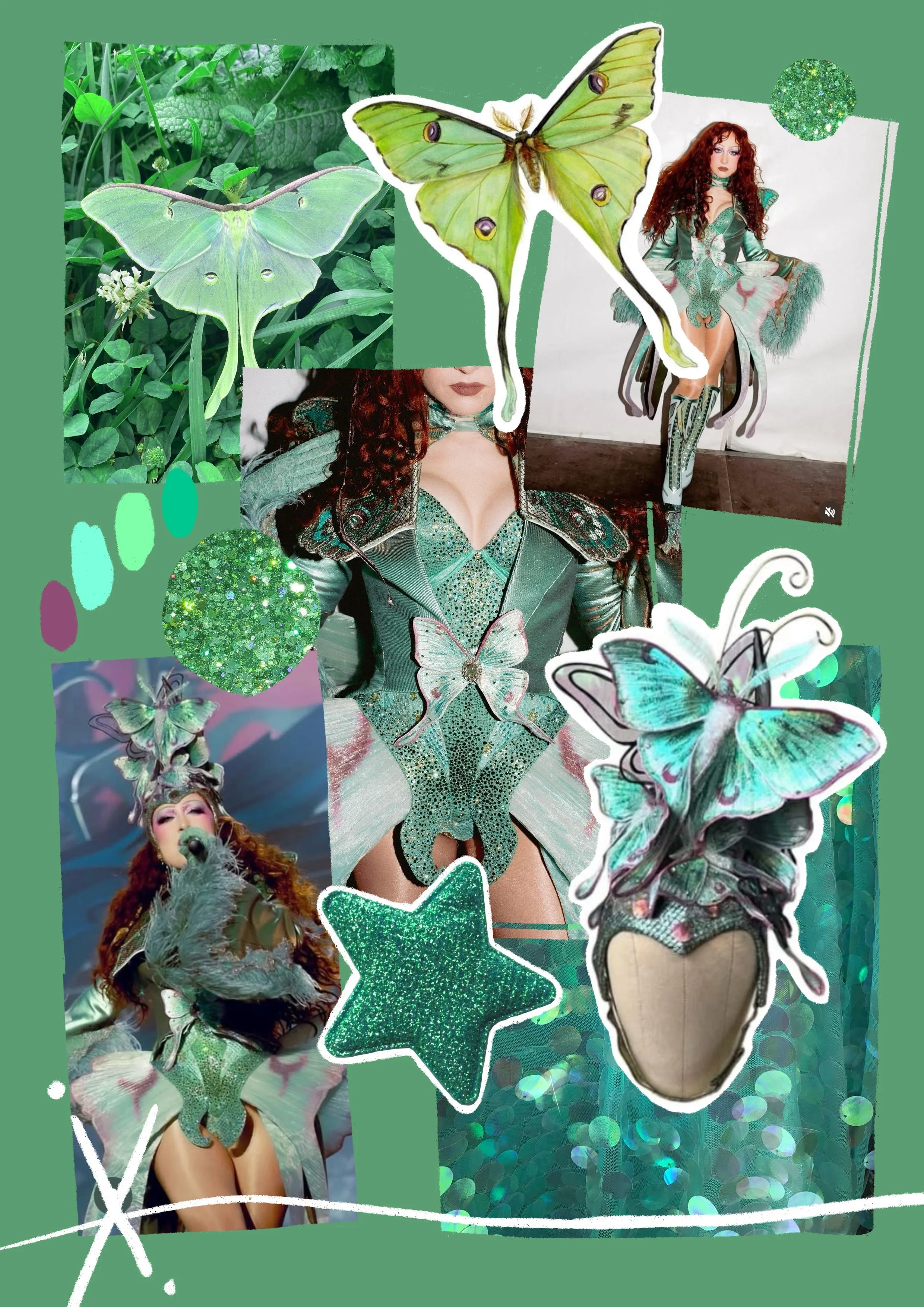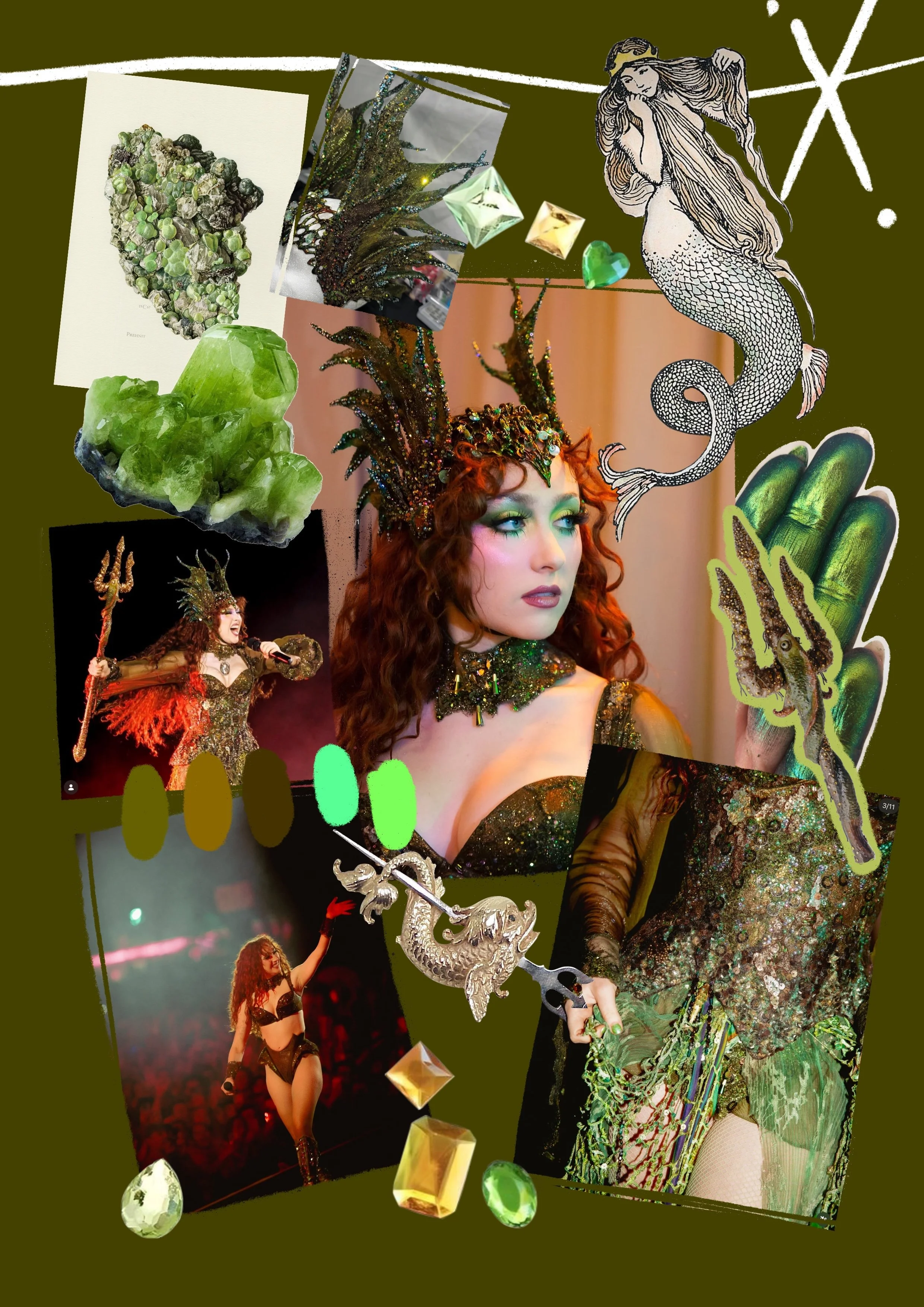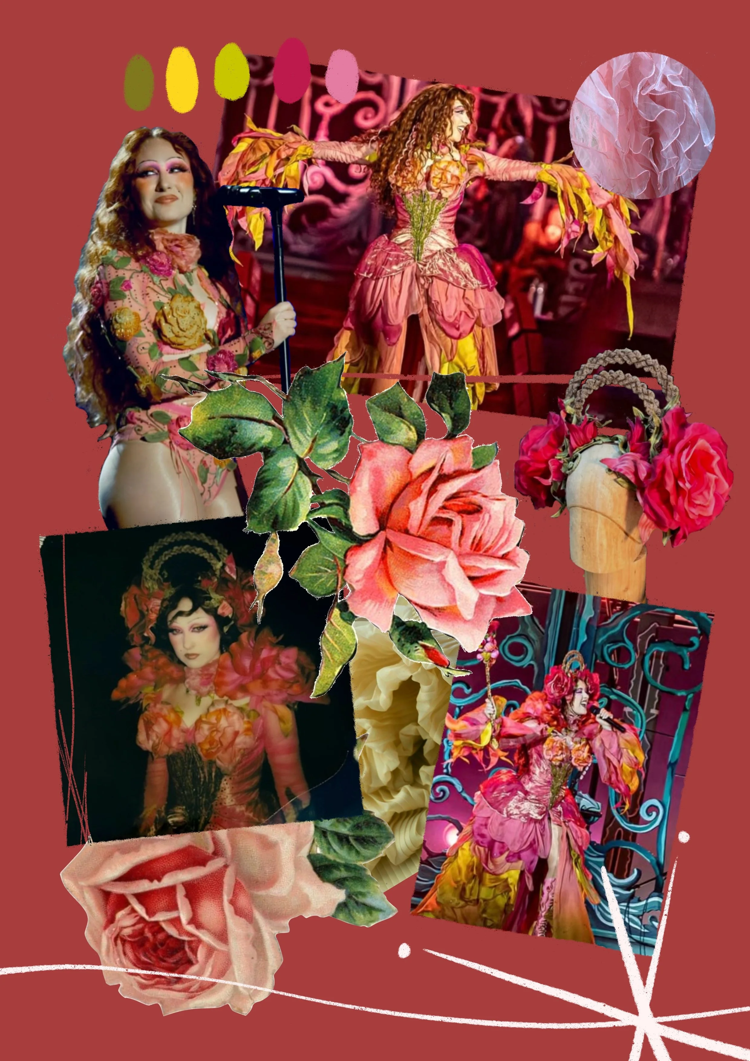 (Toutes les images ayant servi aux mood boards ont été trouvées sur l’Instagram de Chappell Roan, mais aussi sur les comptes pinkponyarchive, chappellroanstyle et chappellscloset. Les noms des créateurs des décors, costumes, accessoires, makeups y sont précisés.)