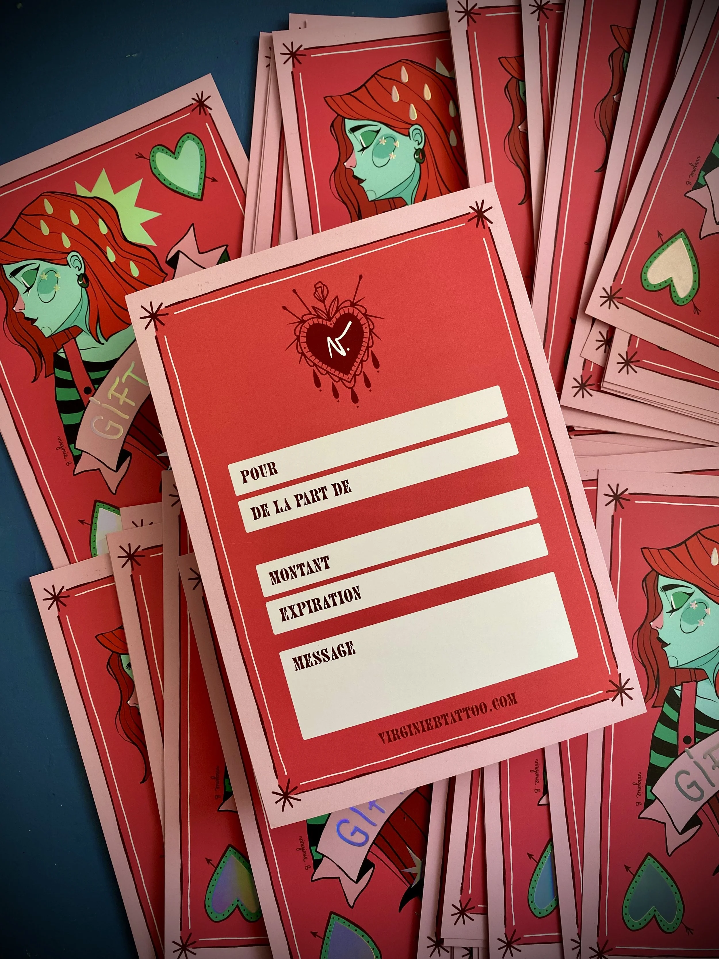 C’est une carte qui permet d’offrir ou de se faire offrir un tatouage ou du merchandising de ma production. J’ai toujours trouvé que c’était une super idée pour les fêtes et les anniversaires si on veut être original !
