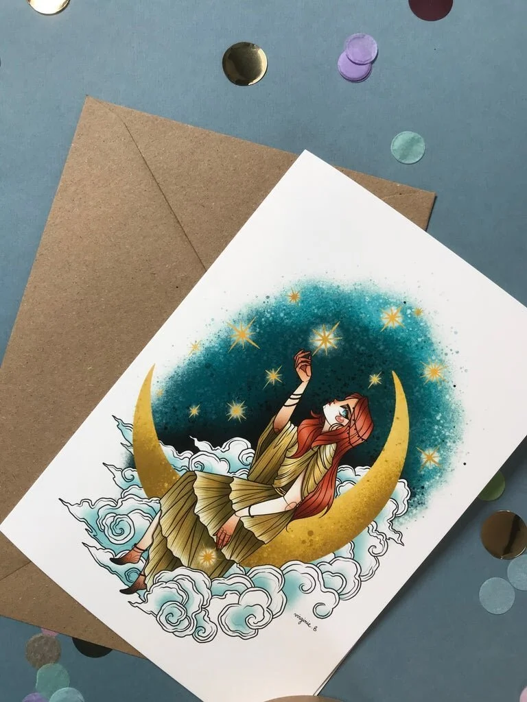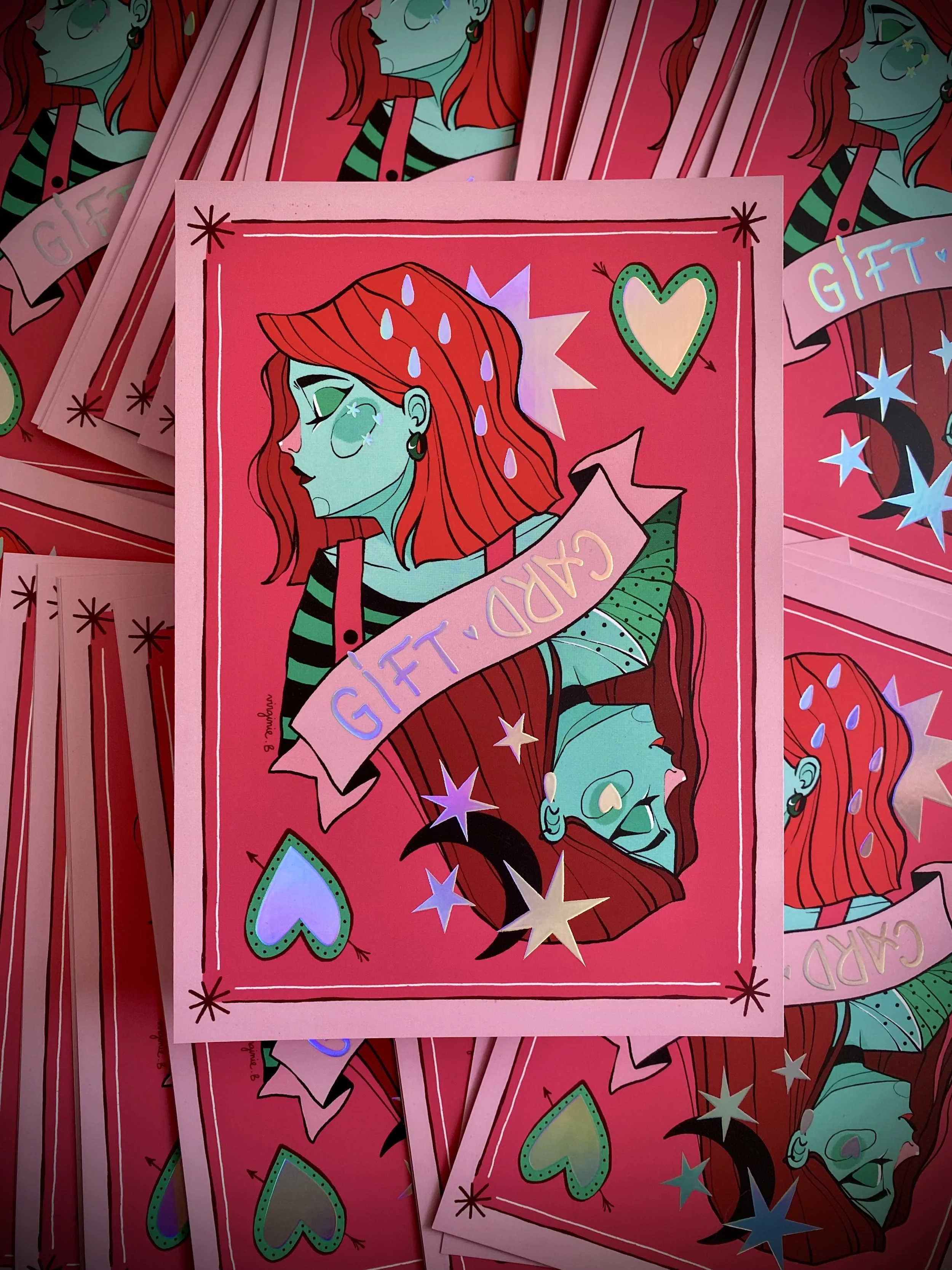 L’idée est de toujours réaliser une jolie carte pour que celle-ci fasse aussi partie du cadeau et puisse être conservée comme souvenir pour le ou la futur.e tatoué.e.
