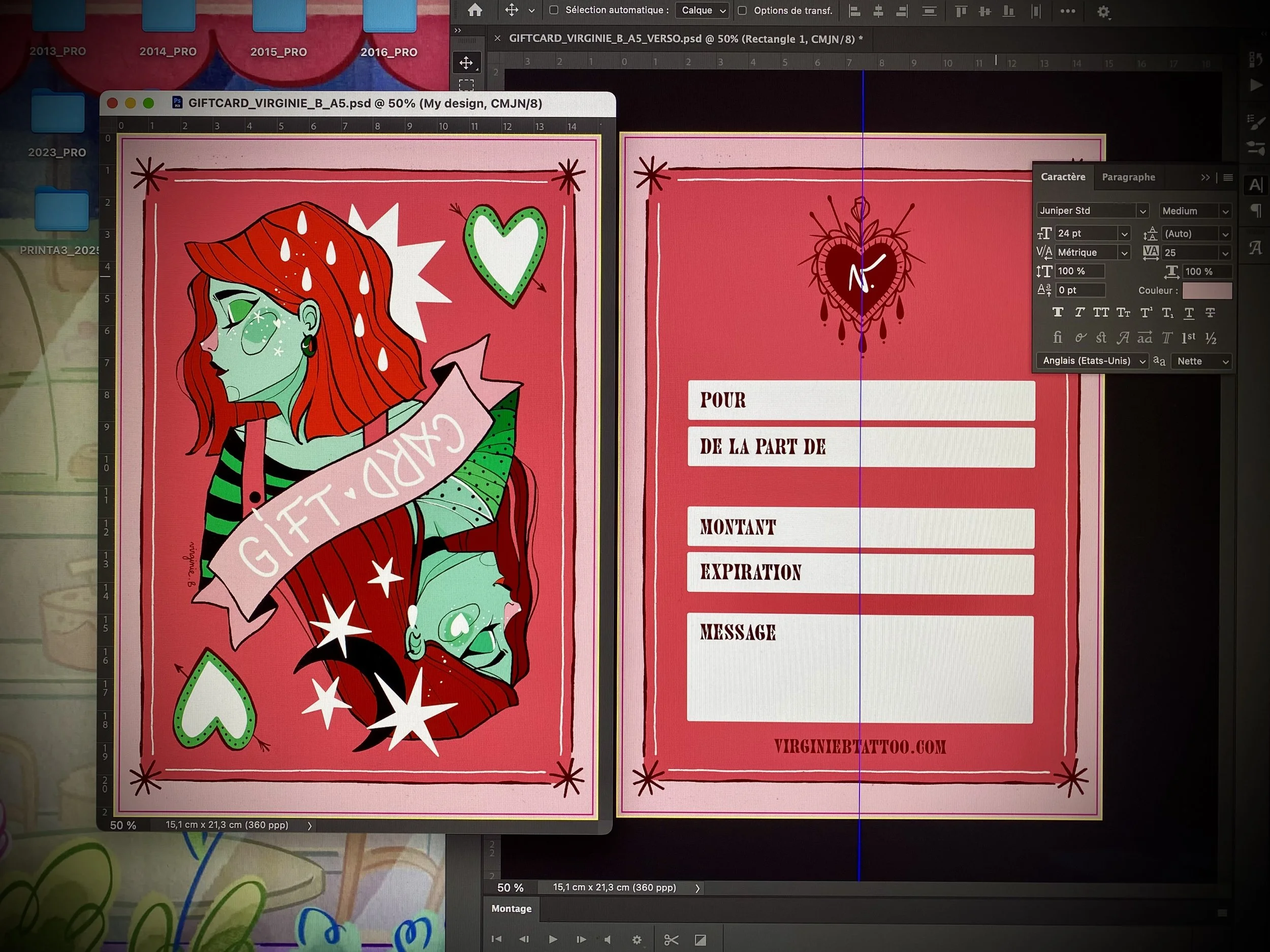 Hors, même si j’ai été graphiste avant d’être tatoueuse, c’était y’a plus de 12 ans et j’ai pas exercé assez longtemps pour avoir garder tous les aspects techniques du métier bien en tête. Bref, en gros c’était très chiant ! Mais j’ai réussi à finaliser mon fichier pour que ça passe et je suis plutôt fière du résultat !